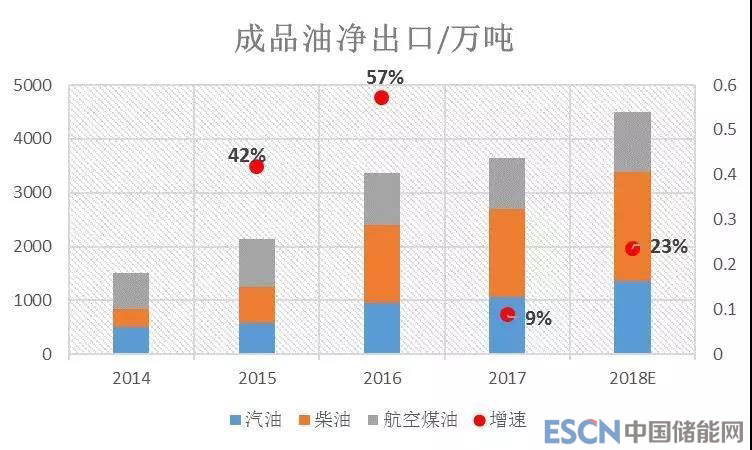 圖7 成品油凈出口結(jié)構(gòu)和增速