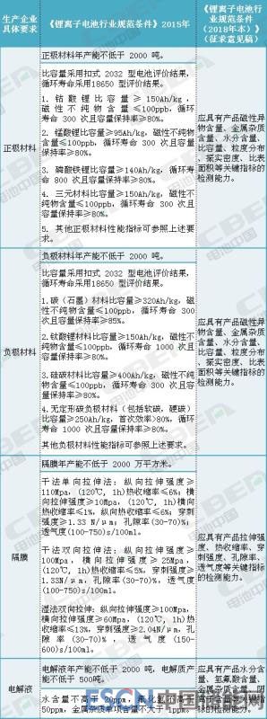 “新能源汽車用動(dòng)力電池除外”。所以,看到這個(gè)文件時(shí)原先神經(jīng)緊張的新能源汽車用動(dòng)力電池企業(yè)就不用眉頭緊鎖了。但也不意味著就可以完全對(duì)這個(gè)文件不管不顧了?!朵囯x子電池行業(yè)規(guī)范條件(2018年本)》(征求意見(jiàn)稿)并沒(méi)有指出儲(chǔ)能鋰電池是否除外!同時(shí),對(duì)于動(dòng)力電池的上游正極材料、負(fù)極材料、隔膜和電解液生產(chǎn)企業(yè)都有明確要求,所以,仍需要認(rèn)真了解一下!