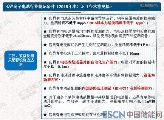 據(jù)悉,較2015年的《鋰離子電池行業(yè)規(guī)范條件》,《鋰離子電池行業(yè)規(guī)范條件(2018年本)》(征求意見(jiàn)稿)還有如下變化: