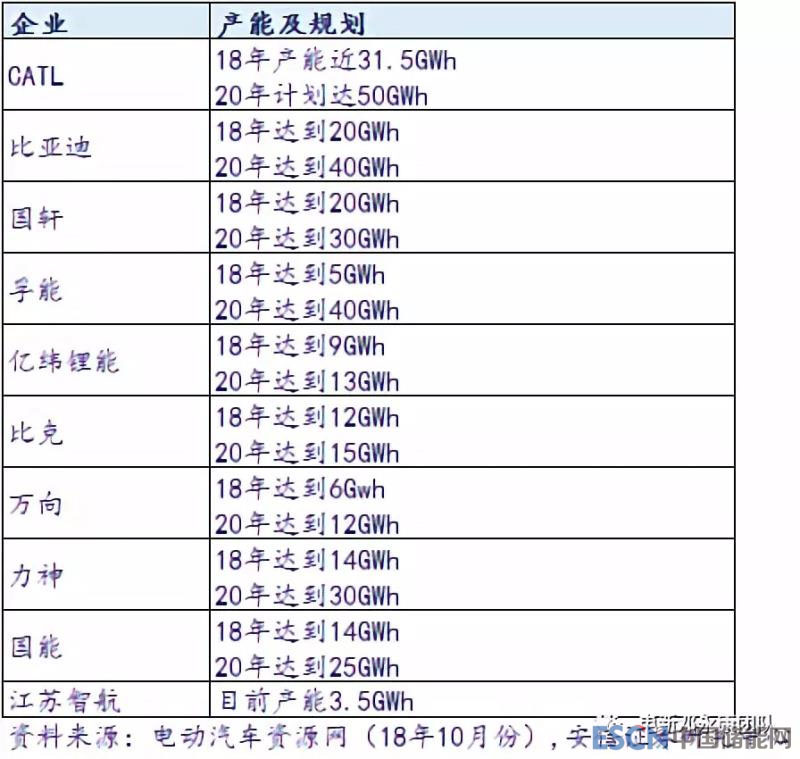 根據(jù)電動(dòng)汽車資源網(wǎng)的統(tǒng)計(jì),未來2年孚能科技和力神的擴(kuò)產(chǎn)計(jì)劃最為激進(jìn),其中孚能預(yù)計(jì)從18年的5GWh擴(kuò)產(chǎn)至40GWh、力神從18年的14GWh擴(kuò)產(chǎn)至30GWh;億緯鋰能、比克相對(duì)保守,未來2年預(yù)計(jì)分別增加4GWh和3GWh產(chǎn)能。