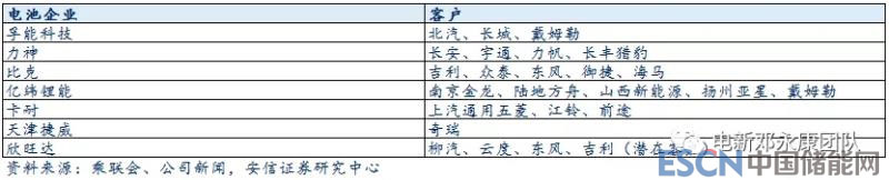 表4:部分電池企業(yè)下游客戶統(tǒng)計(jì)