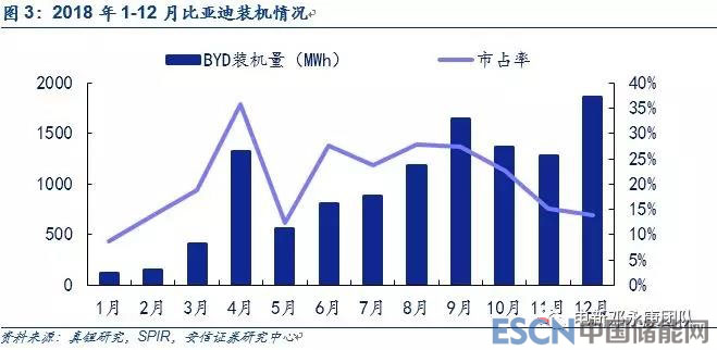 10月和11月,行業(yè)裝機(jī)環(huán)比增長2%和37%,但比亞迪裝機(jī)量卻出現(xiàn)下滑。近3月,比亞迪的裝機(jī)份額連續(xù)下滑,從9月份的27.3%下滑至12月的13.9%。