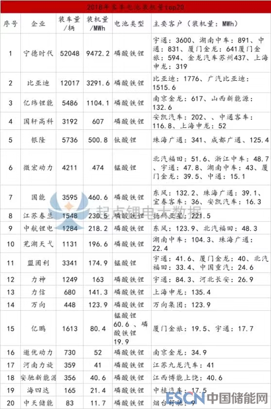 而2017年排名前20的企業(yè)分別是寧德時代、比亞迪、沃特瑪、國軒高科、北京國能、銀隆、力神、微宏、盟固利、中航鋰電、億緯鋰能、蕪湖天弋、中天儲能、海四達(dá)、江蘇春蘭、鵬輝能源、億鵬、萬向、東莞邁科和上海航天電源。