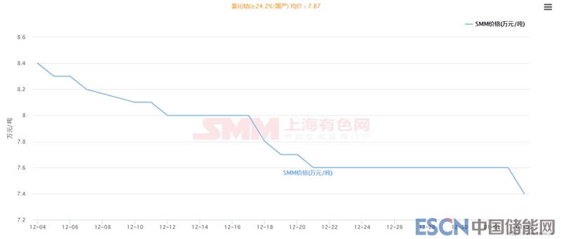 金屬鋰前期價(jià)格下跌2萬(wàn)元/噸,SMM金屬鋰價(jià)格為79-82萬(wàn)元/噸(低幅工業(yè)級(jí),高幅電池級(jí))。SMM認(rèn)為,下跌的關(guān)鍵原因是下游需求減少。據(jù)下游廠家表示,沿海地區(qū)由于環(huán)保檢查,許多生產(chǎn)醫(yī)藥中間體的企業(yè)不得不減產(chǎn)停產(chǎn)進(jìn)行技改。預(yù)計(jì)春節(jié)后,第一季度末才會(huì)恢復(fù)正常生產(chǎn)。