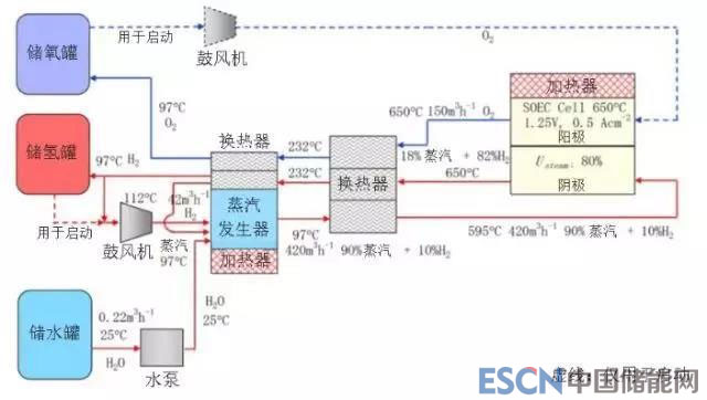 1、H2O電解制H2:高溫電解基本轉(zhuǎn)換模式,電解池效率可達(dá)85%~95%,良好的熱管理設(shè)計(jì)下可達(dá)75%~83%的系統(tǒng)效率。
