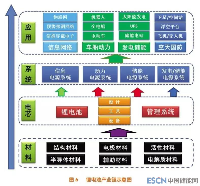 中國(guó)鋰電池的產(chǎn)業(yè)鏈將更為完善,包括原材料、材料、器件(單體)、模組及系統(tǒng)、應(yīng)用等(圖6),智能制造及智能工廠將成為主流。雖然鋰電池未來(lái)市場(chǎng)空間非常大,但截至2018年4月,我國(guó)動(dòng)力電池產(chǎn)能已達(dá)200GWh,而平均產(chǎn)能利用率不足30%,重復(fù)建設(shè)的低端產(chǎn)能過(guò)剩,行業(yè)泡沫較大。隨著補(bǔ)貼退坡到期,預(yù)計(jì)產(chǎn)業(yè)將迎來(lái)大規(guī)模的重組,倒逼產(chǎn)業(yè)升級(jí)、提高參與國(guó)際競(jìng)爭(zhēng)的能力。產(chǎn)業(yè)發(fā)展將是規(guī)模聯(lián)盟化、細(xì)分專業(yè)化、智能無(wú)人化。同時(shí),電池綠色回收產(chǎn)業(yè)必須布局,形成可持續(xù)發(fā)展態(tài)勢(shì)。