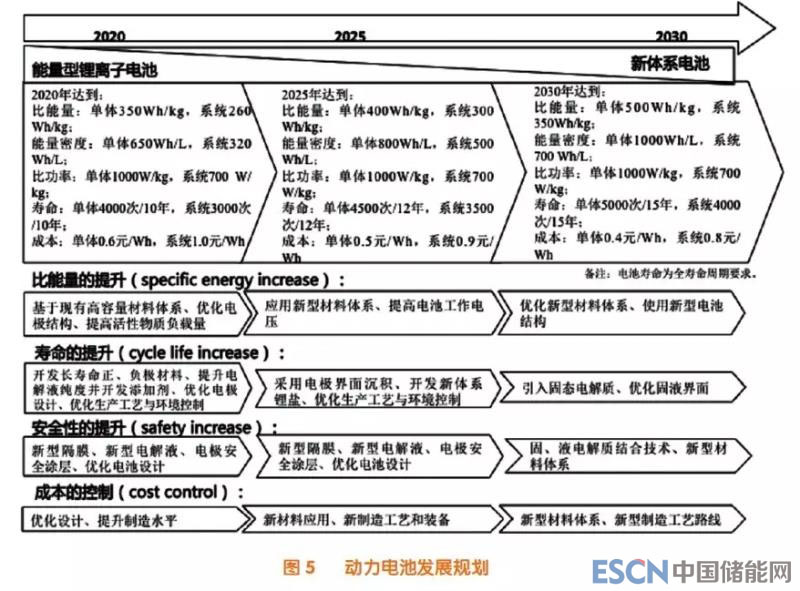 針對(duì)鋰電池的技術(shù)發(fā)展,國(guó)家工信部、科技部出臺(tái)了各自的發(fā)展規(guī)劃,同時(shí)《中國(guó)制造2025》也確定了鋰電池發(fā)展的技術(shù)路線。圖5顯示了鋰電池技術(shù)發(fā)展規(guī)劃,該計(jì)劃與日、韓、美有異曲同工之處。技術(shù)發(fā)展趨勢(shì)是高安全、高比能、高比功率、長(zhǎng)壽命、低成本。追求比能量的提高是鋰電池技術(shù)發(fā)展的主旋律,鋰離子電池發(fā)展史基本可以概括為:金屬Li電池→鋰離子電池→金屬Li電池。當(dāng)年由于安全問(wèn)題從金屬Li電池轉(zhuǎn)向了鋰離子電池體系,今天我們?yōu)樽非蟾叩碾姵啬芰棵芏扔珠_(kāi)始轉(zhuǎn)向了金屬Li體系。未來(lái)應(yīng)用必須關(guān)注安全性、快充特性和成本可接受性,同時(shí),電池梯次利用及回收技術(shù)發(fā)展也迫在眉睫。