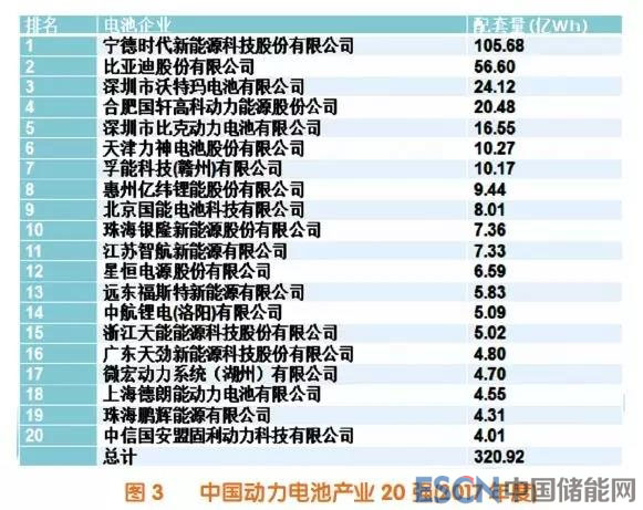 中國(guó)的鋰離子電池產(chǎn)業(yè)技術(shù)是從跟蹤研仿逐步走向自主創(chuàng)新的,產(chǎn)品應(yīng)用從最初的手機(jī)和筆記本電腦逐步走向動(dòng)力和儲(chǔ)能應(yīng)用。經(jīng)過(guò)20年的發(fā)展,中國(guó)已經(jīng)成為鋰離子電池的制造大國(guó)和消費(fèi)大國(guó),從最初的數(shù)家發(fā)展為數(shù)百家,擁有最完整的產(chǎn)業(yè)鏈,全球市場(chǎng)占有率已經(jīng)達(dá)到52%。圖2為近幾年中國(guó)鋰離子電池產(chǎn)量的統(tǒng)計(jì)圖,2017年總產(chǎn)量已經(jīng)達(dá)到1009億瓦時(shí),銷售收入達(dá)到1589億元。圖3為中國(guó)動(dòng)力電池20強(qiáng)清單,其中,CATL已經(jīng)發(fā)展為全球最大的鋰離子電池制造商。在電動(dòng)汽車補(bǔ)貼政策牽引下,動(dòng)力用鋰離子電池迅速發(fā)展,電池類型圓柱、方形、聚合物共存,但方形最多達(dá)到54%,圓柱占26%,聚合物占20%。材料體系從2016年的70%磷酸鐵鋰體系發(fā)展到2017年的磷酸鐵鋰和三元體系共存狀態(tài)(分別占49%和45%)。電池的電性能也不斷提高,大容量方形磷酸鐵鋰單體電池比能量已經(jīng)超過(guò)170Wh/kg,高鎳材料21700電池比能量已經(jīng)達(dá)到240~280Wh/kg。但進(jìn)入2018年,人們從頻發(fā)的電動(dòng)車起火事故中認(rèn)識(shí)到安全的重要性,磷酸鹽體系系統(tǒng)比能量和安全性具有一定優(yōu)勢(shì),或?qū)⒂绊憚?dòng)力電池中磷酸鹽和高鎳體系的布局。