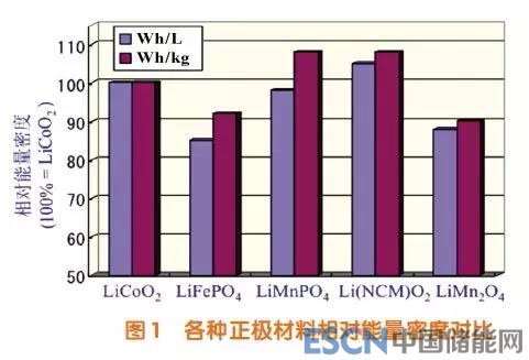 圖1各種正極材料相對(duì)能量密度對(duì)比