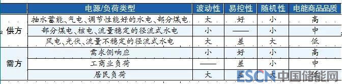 由于電能難以大量儲存,發(fā)用功率必須實時平衡,從對電力系統(tǒng)調(diào)度運行和功率平衡的影響看,筆者認為,電能商品品質應從波動性、易控性、隨機性3個維度進行衡量。其中波動性指功率相對于自身容量的變化幅度;易控性指將功率在一定范圍內(nèi)自由調(diào)節(jié)的難易程度。隨機性與易控性有一定的關聯(lián),隨機性大的電源或負荷一定難于控制,而隨機性小的電源或負荷可能易控,如可靈活調(diào)節(jié)的資源,也可能難控,如功率相對固定的資源。對當前各類常見供方(電廠)所生產(chǎn)和需方(負荷)所消費的電能商品品質可以給出表1所示的排級。需要注意的是,這僅按一般情況依照電能商品品質高低對電源和負荷進行大致分類,而非給電源或負荷“貼標簽”。例如,如果品質一般的煤電經(jīng)過靈活性改造,可升級為高品質的調(diào)峰電源。