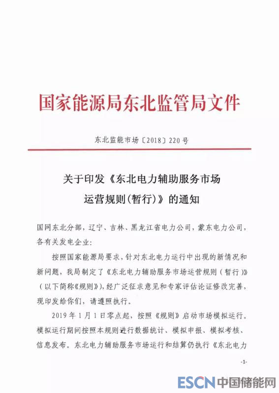 隨著《東北電力輔助服務(wù)市場(chǎng)運(yùn)營(yíng)規(guī)則(暫行)》正式印發(fā),東北市場(chǎng)已于2019年1月1日零點(diǎn)起按照新規(guī)則啟動(dòng)市場(chǎng)模擬運(yùn)行。