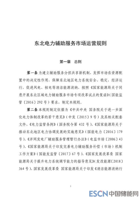 以下為《東北電力輔助服務(wù)市場(chǎng)運(yùn)營(yíng)規(guī)則(暫行)》文件全文: