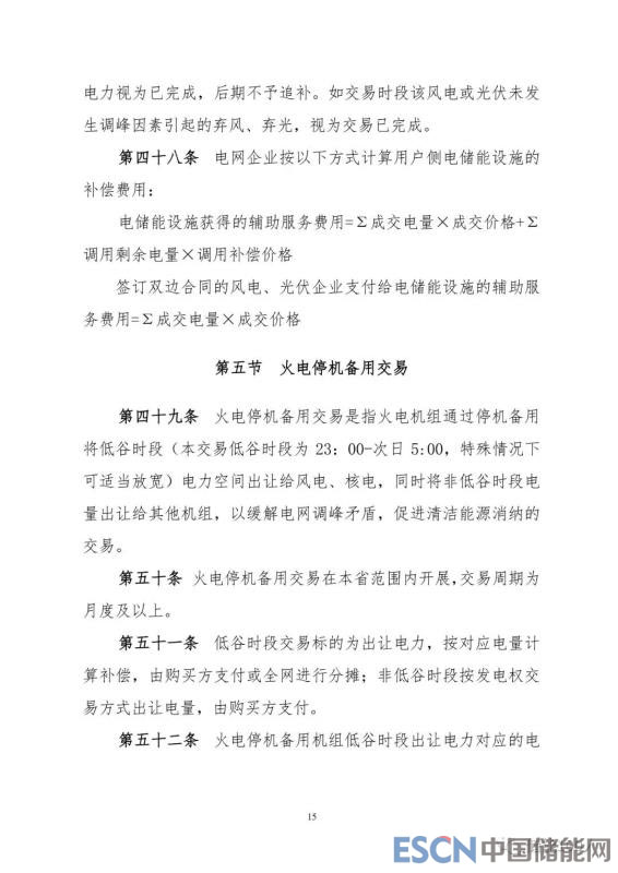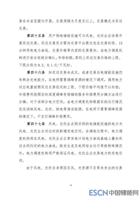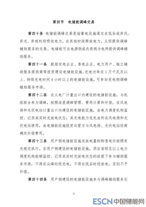 本次文件對(duì)電儲(chǔ)能調(diào)峰交易規(guī)則(第三章第四節(jié)41—48條),除增加與“光伏電站”相關(guān)表述外,其它修訂點(diǎn)不多。