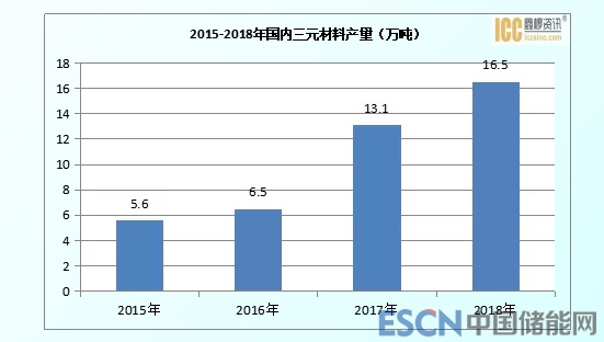 2018年國內(nèi)三元材料市場,比起正極材料的其他三個(gè)品種,無論從市場規(guī)模,還是產(chǎn)品應(yīng)用,都倍受業(yè)界關(guān)注。在年初新能源車補(bǔ)貼對(duì)能量密度繼續(xù)提高要求后,乘用車幾乎全部倒向三元材料。據(jù)鑫欏資訊對(duì)國內(nèi)28家三元材料企業(yè)產(chǎn)量統(tǒng)計(jì),2018年三元材料產(chǎn)量為16.5萬噸,同比增長26%。