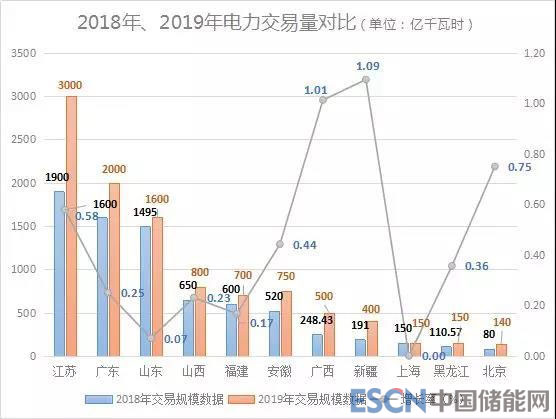 2019年的交易規(guī)模也在近期陸續(xù)公布于眾,截至目前,全國已經有十多個省市公布了2019年電力交易規(guī)模,較2018年各省市電力交易規(guī)模有了大幅提升。