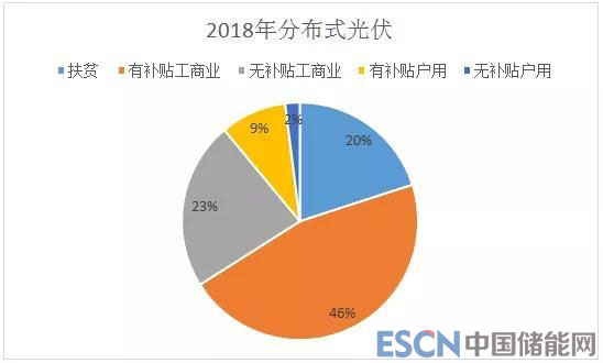 在2018年的分布式裝機(jī)中,各類項(xiàng)目占比如下圖所示: