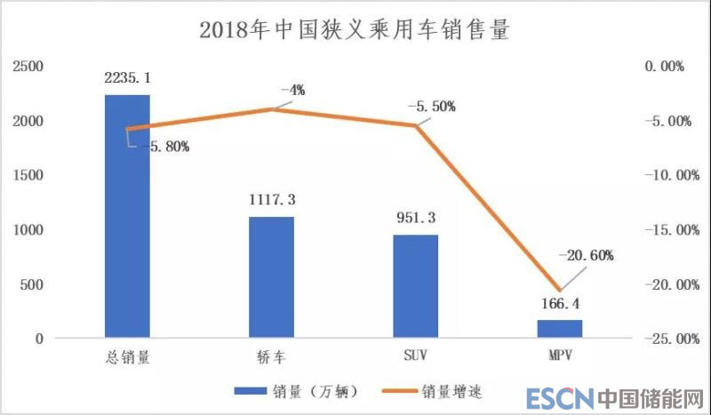 來自乘用車市場信息聯(lián)席會發(fā)布的數(shù)據(jù)顯示,2018年狹義乘用車(轎車、SUV、MPV)銷量為2235.05萬輛,較上年同期減少5.8%,其中轎車銷量下滑4%、MPV下滑20.6%、SUV下滑3.1%,為1990年代以來首次年度下滑。