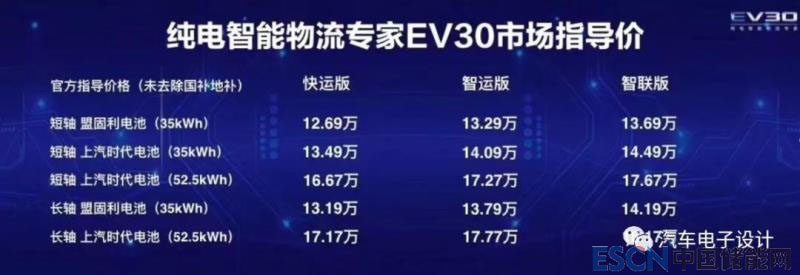 中國儲能網(wǎng)訊:1月14日,上汽大通EV30系列產(chǎn)品發(fā)布會在海南博鰲舉行?!叭X車身框架設(shè)計,減重200公斤、多版本電池及容量、面向城市快遞物流EV30上市…”這個車型帶來的亮點還真不少。本文僅就一項指標“多版本電池”特點,站在技術(shù)角度、供應(yīng)鏈角度,小議和探討其優(yōu)勢。