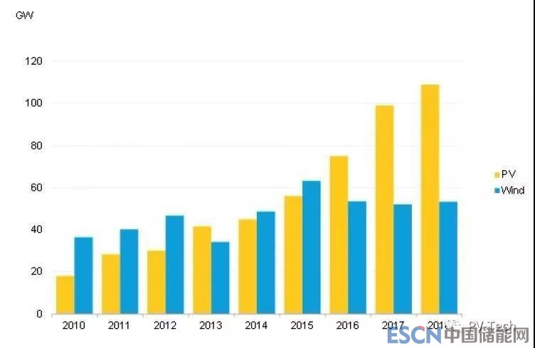 根據(jù)彭博新能源財經(jīng)發(fā)布的臨時性數(shù)據(jù),因開發(fā)兆瓦級光伏項目的成本下降了12%,2018年全球太陽能光伏裝機量達(dá)到109GW,受此刺激,中國以外的市場加大了項目開發(fā)力度。