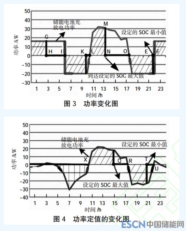 在采取峰谷儲(chǔ)能電家的處理工作時(shí),根據(jù)并網(wǎng)平衡的運(yùn)行可以得到下頁圖3的儲(chǔ)能電池的功率變化圖。