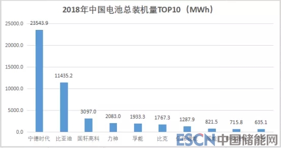 而比亞迪排名第二,雖說僅次于寧德時代,但是總裝機量為11435.2MWh,是寧德時代2018年總裝機量的48%,差距較大。