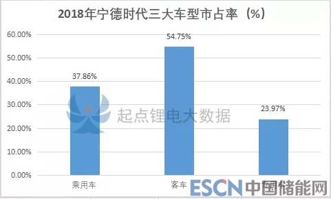 從專用車占比來看,2018年專用車電池總裝機量6.5GWh,寧德時代裝機量為1558MWh,占比達23.97%,市占率是三大車型中最低的。