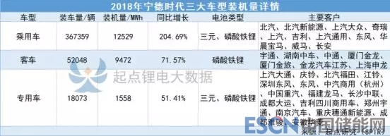 中國儲能網(wǎng)訊:寧德時代在2018年電池裝機上,壟斷乘用車、客車、專用車三大車型的裝機量冠軍名號,并在總裝機量上排名NO.1。