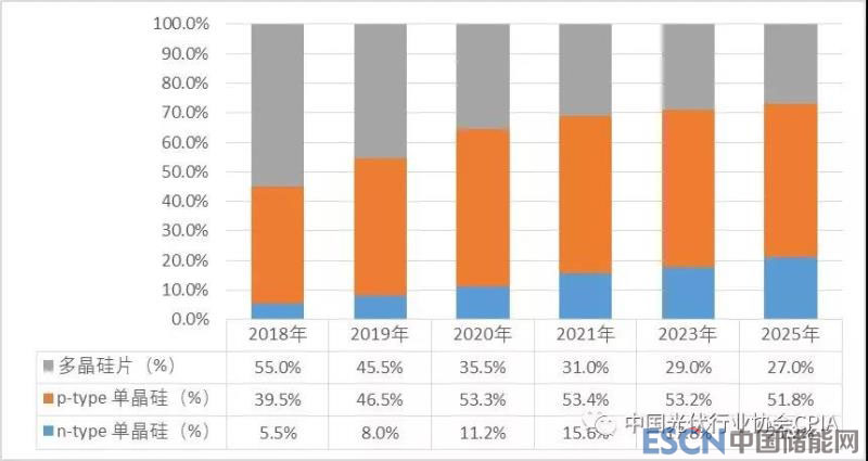 2018-2025年全國不同類型硅片市場占比變化趨勢