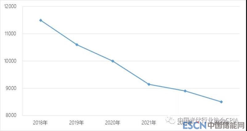 2018-2025年三氯氫硅法多晶硅生產(chǎn)線設備投資成本變化趨勢(單位:萬元/千噸)