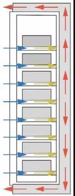 電池工作中產(chǎn)生的熱量,需要通過模塊化的通風系統(tǒng)及時疏散。在支架間形成良好的空氣流動,如圖所示。