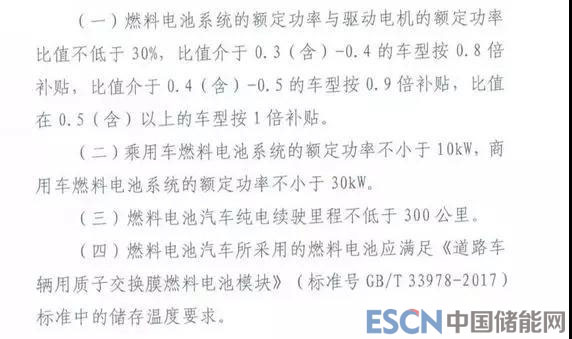 其中燃料電池乘用車(chē)按照搭載燃料電池系統(tǒng)的額定功率進(jìn)行補(bǔ)貼,補(bǔ)貼標(biāo)準(zhǔn)為6000元/KW,最高可達(dá)20萬(wàn)元/輛,燃料電池輕型客車(chē)、貨車(chē)定額補(bǔ)貼30萬(wàn)元/輛,燃料電池大中型客車(chē)、中重型貨車(chē)定額補(bǔ)貼50萬(wàn)元/輛。納入補(bǔ)貼的燃料電池汽車(chē)要滿(mǎn)足以下技術(shù)要求: