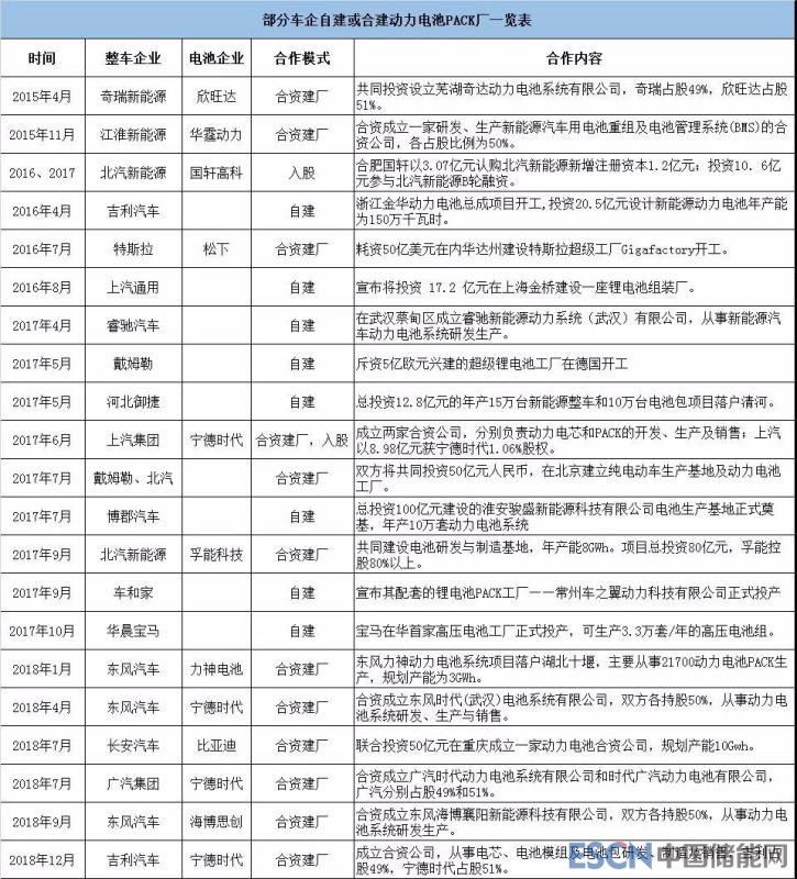 在此需求之下,一系列以車企自建或合建電池PACK項目在全國各地接連落地。
