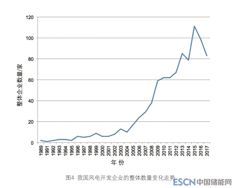 從各類整機(jī)制造企業(yè)的數(shù)量變化來看,眾所周知,由于國內(nèi)企業(yè)尚未 掌握相關(guān)技術(shù),我國風(fēng)電開發(fā)早期采 用的是利用國外政府贈款、引進(jìn)國外 設(shè)備的模式。因此,在較長一段時(shí)期 內(nèi),國內(nèi)市場一直為外資企業(yè)把控, 數(shù)量從最初的2家增加到1997年的8家。此后,這類企業(yè)的數(shù)量存在波動,2009年之后則持續(xù)減少,2012年以 來僅有GE、西門子-歌美颯、Vestas三家企業(yè)維持在華業(yè)務(wù)。此前有觀點(diǎn) 將外資企業(yè)的撤離歸咎于政府相關(guān)部 門設(shè)定的設(shè)備國產(chǎn)化率要求,但實(shí)際 上早在2009年,國家發(fā)展改革委就印 發(fā)了《關(guān)于取消風(fēng)電工程項(xiàng)目采購設(shè) 備國產(chǎn)化率要求的通知》(發(fā)改能源〔2009〕2991號)。仔細(xì)分析可知,除 了價(jià)格因素外,導(dǎo)致上述局面的一個 最主要原因是,外資企業(yè)缺乏戰(zhàn)略調(diào) 整的靈活性,未能及時(shí)根據(jù)中國市場 的特點(diǎn)推出更加多元化的產(chǎn)品和服務(wù)。