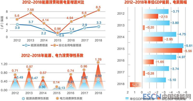 近日,國家統(tǒng)計(jì)局、國家能源局等相繼發(fā)布數(shù)據(jù)顯示,2018年我國國內(nèi)生產(chǎn)總值比上年增長6.6%,能源消耗同比增長3.3%,用電同比增長8.5%。由此可得,2018年我國單位產(chǎn)值能耗下降3.1%,單位產(chǎn)值電耗增長1.8%。