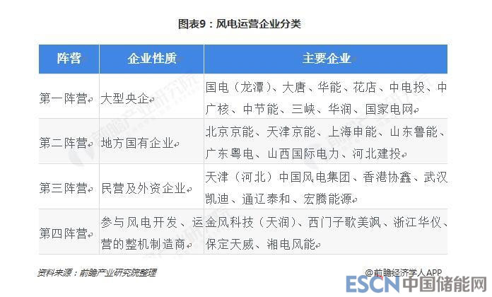 在風(fēng)電運(yùn)營(yíng)領(lǐng)域,根據(jù)企業(yè)性質(zhì),中國(guó)風(fēng)電開(kāi)發(fā)、運(yùn)營(yíng)企業(yè)可以大致分為四類(lèi):大型央企、地方國(guó)有企業(yè)、民營(yíng)及外資企業(yè)、參與風(fēng)電場(chǎng)開(kāi)發(fā)的整機(jī)制造商。