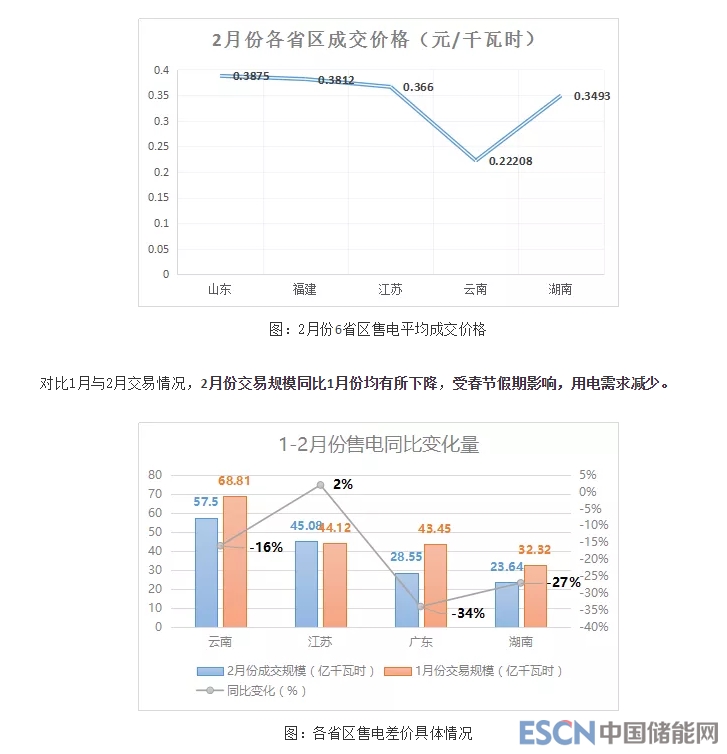 同期,湖南、福建、山東、云南、江蘇5省也公布了2月份售電情況(具體交易情況見文末)。