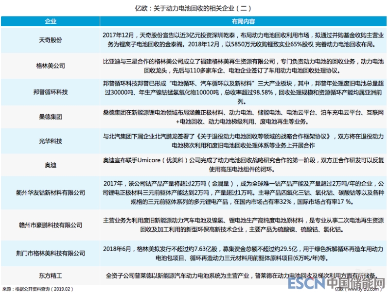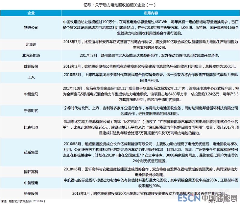 據(jù)億歐汽車統(tǒng)計,在政府政策的號召下,很多企業(yè)正在逐漸步入電池回收的市場藍(lán)海中。