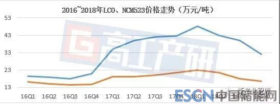 從占比來(lái)看NCM占比最高,2018年達(dá)到49.7%,同比2017年提升了9個(gè)百分點(diǎn),三元材料在動(dòng)力電池、數(shù)碼電池、小動(dòng)力電池等領(lǐng)域大比例應(yīng)用。
