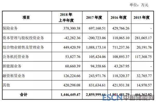 中民投各業(yè)務(wù)板塊收入構(gòu)成情況