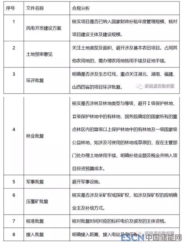 項目的支撐性文件是合規(guī)分析的切入口,想必大家都熟悉風電項目須取得的合規(guī)文件,小編就不一一贅述了(如需可參考本公眾號“一表讀懂風電項目手續(xù)文件及獲取部門”一文)。對合規(guī)文件的分析主要關注三點,一為文件是否過期,二為頒發(fā)主體是否有資格,三為文件披露的關鍵信息。簡單列舉幾項文件的合規(guī)分析。