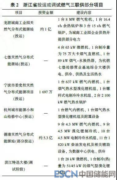 現(xiàn)階段,浙江省燃?xì)饫錈犭娙?lián)供發(fā)展相對(duì)較為落后。截至2017年,臨近浙江省的上海市共計(jì)有約47個(gè)投產(chǎn)的燃?xì)饫錈犭婍?xiàng)目,而臨近的江蘇省投產(chǎn)和核準(zhǔn)的此類項(xiàng)目共有約20個(gè)。而據(jù)不完全統(tǒng)計(jì),浙江省處于建設(shè)或運(yùn)行的區(qū)域型燃?xì)饫錈犭娙?lián)供項(xiàng)目?jī)H2個(gè),處于前期可研規(guī)劃的主—有浙能長(zhǎng)興和平鎮(zhèn)城南工業(yè)園天然氣分布式能源站、海正藥業(yè)(杭州)有限公司天然氣分布式能源、寧波科元塑膠有限公司分布式能源和石浦前塘工業(yè)區(qū)多能互補(bǔ)智慧能源4個(gè)項(xiàng)目。浙江省樓宇型燃?xì)饫錈犭娙?lián)供項(xiàng)目則包含杭燃七堡天然氣分布式能源站、寧波市委黨校天然氣分布式能源項(xiàng)目、杭州城市能源小和山搶修中心、杭州濱江特迅大樓共4個(gè)。在浙江省投資燃?xì)饫錈犭娙?lián)供的企業(yè)主—包括浙能興源投資有限公司、龍游中機(jī)新奧智慧能源有限公司、華電集團(tuán)等。浙江省投運(yùn)或調(diào)試的燃?xì)馊?lián)供部分項(xiàng)目介紹如表2所示。此外,湖州和杭州等地的一些醫(yī):也已積極開展燃?xì)饫錈犭娙?lián)供的規(guī)劃。在國(guó)家電力體制改革形勢(shì)下,允許企業(yè)燃?xì)饫錈犭婍?xiàng)目電量自發(fā)自用,甚至余電可向周邊用戶直接交易,此類趨勢(shì)將利于燃?xì)馊?lián)供的發(fā)展。