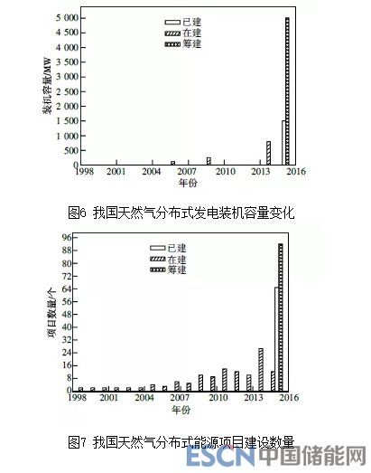 就國(guó)內(nèi)而言,燃?xì)饫錈犭娙?lián)供研究起步較晚,近年在煤電、水電等平穩(wěn)發(fā)展的情況下,燃?xì)獍l(fā)電裝機(jī)容量卻呈現(xiàn)大幅增長(zhǎng)?!短烊粴夥植际侥茉串a(chǎn)業(yè)發(fā)展報(bào)告2016》中指出,我國(guó)近幾年燃?xì)夥植际桨l(fā)電裝機(jī)容量和燃?xì)夥植际侥茉错?xiàng)目建設(shè)數(shù)量隨時(shí)間變化如圖6和圖7所示。