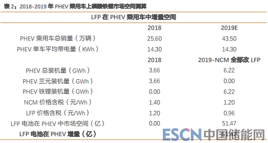 1)我們認為 PHEV 乘用車有望返潮使用磷酸鐵鋰電池,對應增量市場空間約為 51 億;