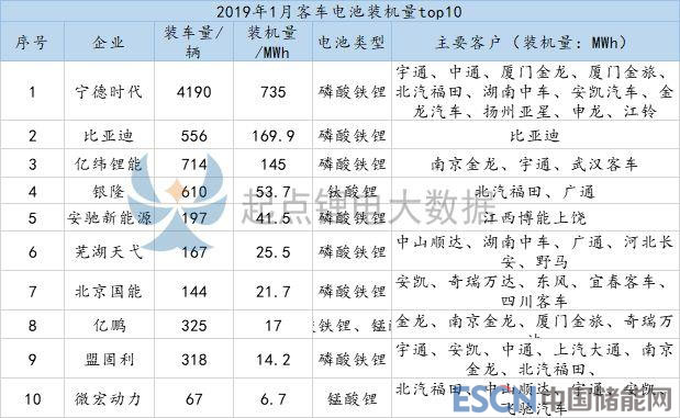 1月寧德時代客車電池裝機量為735MWh,同比增長了131.9%,電池類型全部為磷酸鐵鋰,主要為宇通、中通、廈門金龍、廈門金旅、北汽福田、湖南中車、安凱汽車、金龍汽車、揚州亞星、申龍、江鈴等客戶提供配套。