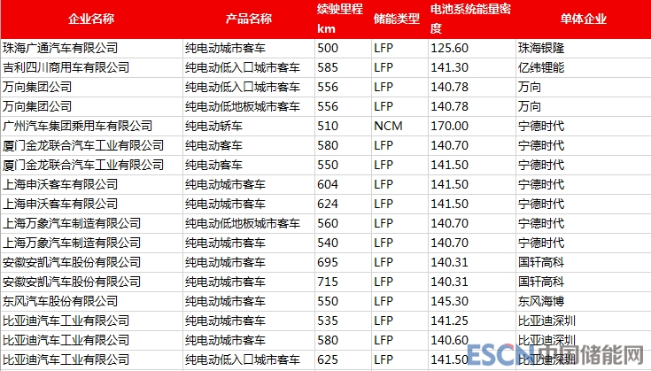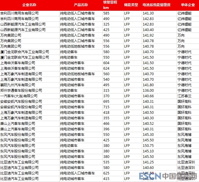 進(jìn)入目錄的32款新能源客車中,共31款能量密度在135Wh/Kg及以上,且均為磷酸鐵鋰電池,寧德時(shí)代、國(guó)軒高科、東風(fēng)海博、億緯鋰能等提供以上配套電池。但可以看到,新能源客車配套電池中,僅1款車型的能量密度超過(guò)150Wh/Kg,顯示出行業(yè)對(duì)客車的能量密度要求并不高,而是更注重其安全性與低成本。