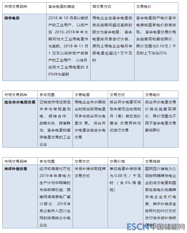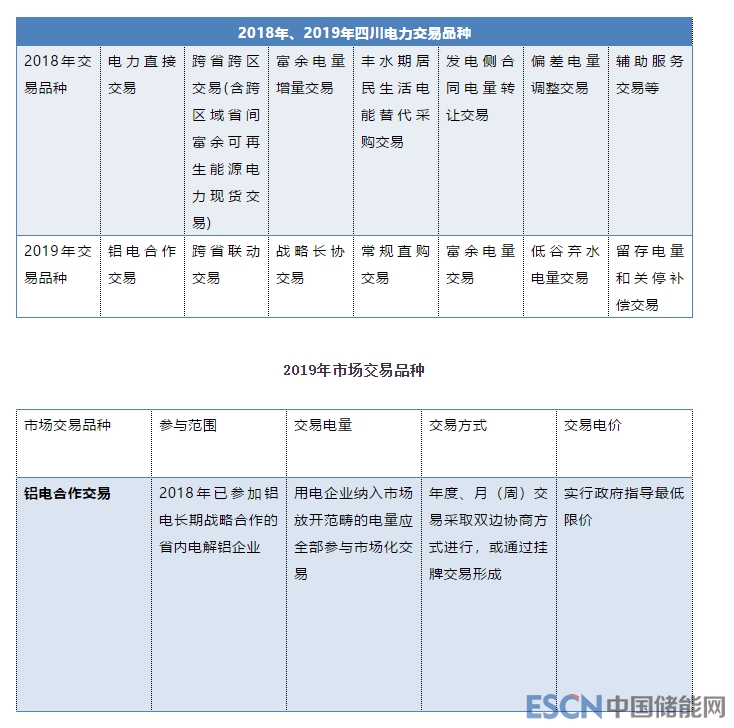 對比2018年的交易品種,可以發(fā)現(xiàn),今年增加了鋁電合作交易低谷棄水電量交易以及留存電量和關(guān)停補償?shù)冉灰灼贩N。其中常規(guī)直購電年度交易供需比擴大,直購電及富余電量限價范圍擴大,新增跨省聯(lián)動和低谷棄水交易的內(nèi)容,同時新增用電側(cè)合同轉(zhuǎn)讓和新增發(fā)電側(cè)年度校核合同電量轉(zhuǎn)讓和拍賣交易。