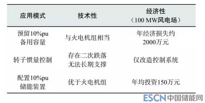 通過仿真及對(duì)比分析得到,預(yù)留備用方案調(diào)頻性能與火電相當(dāng)且可長期有功支撐,但經(jīng)濟(jì)損失巨大;釋放轉(zhuǎn)子慣量控制方案只需修改機(jī)組控制軟件不增加一次投資,但頻率二次跌落無法消除且過大;相比之下,配置儲(chǔ)能方案僅需一次性投入且投資額可接受,其調(diào)頻性能優(yōu)于火電,且在后續(xù)運(yùn)行中儲(chǔ)能可通過減少棄風(fēng)棄光、平滑出力等綜合應(yīng)用模式為業(yè)主增加收益,所以新能源電站配置集中式儲(chǔ)能是最佳的一次調(diào)頻方案。