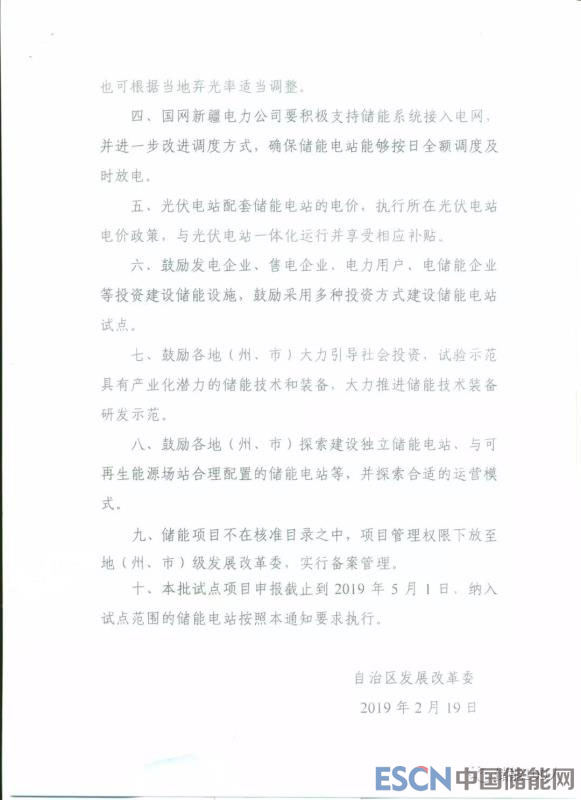 本批發(fā)電側儲能電站試點項目申報截止為2019年5月1日。