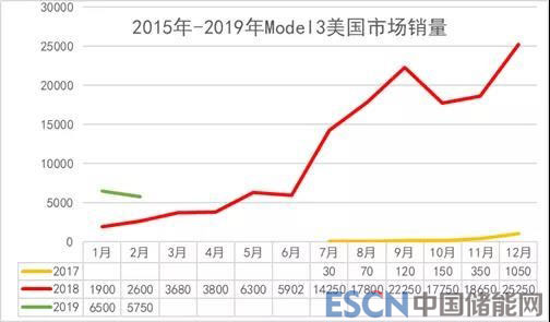 2019年的1月和2月的特斯拉MODEL3的銷量出現(xiàn)下滑,這是特斯拉銷量中較少出現(xiàn)的下滑,原來認為退坡后的銷量會逐步回升,看來尙不樂觀。同時也看出退坡效應在美國和中國都一樣。