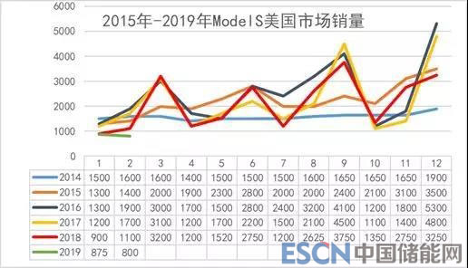 2019年的特斯拉MODEL S的銷量在1-2月稍低,而且2月的銷量也不理想,這也是特斯拉退坡后的表現(xiàn)相對偏弱。